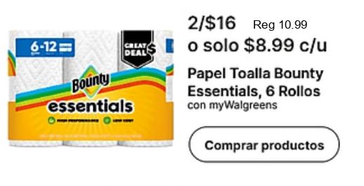 bounty creat deal essentials /$reg $c/u papel toalla rollos mywalgreens comprar productos