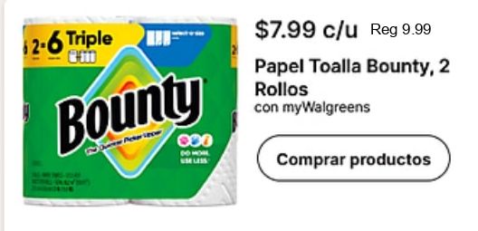 triple bounty $c/u papel toalla rollos mywalgreens comprar productos