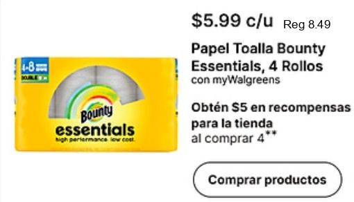 bounty essentials high performance cost $c/u papel toalla rollos mywalgreens obtén recompensas tienda comprar productos