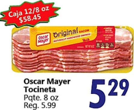caja $oscar original bacon mayer naturally hardwood smoked oscar tocineta pqte reg.
