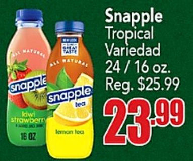 snapple kiwi strawberry great taste tropical variedad matura reg. $tea lemon