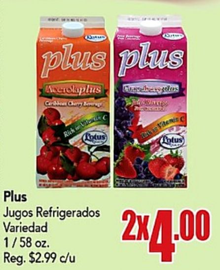 plus acerolaplus caribbean cherry beverag rich view rotus cards angles vitamin totus jugos refrigerados variedad reg. $c/u