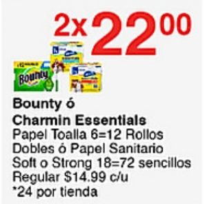 bounty xbounty charmin essentials papel toalla rollos dobles sanitario soft strong sencillos regular $c/u *por tienda