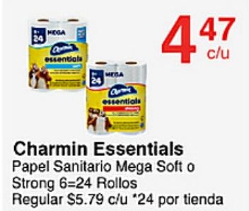 hega essentials mega charmin papel sanitario soft strong rollos regular $c/u *por tienda
