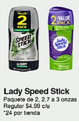 value pack speed stick lady paquete onzas regular $c/u *por tienda