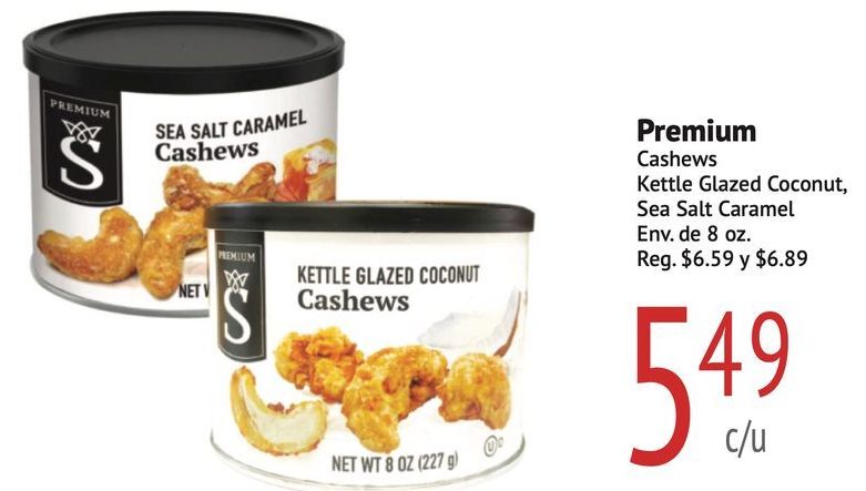premium salt caramel cashews netv kettle glazed coconut reg. $c/u