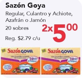 sazón goya regular culantro achiote, azafrán jamón sobres $c/u gova xsazóngova