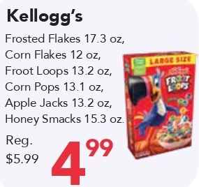 kellogg's frosted flakes corn large size froot loops pops apple jacks honey smacks froit reg.