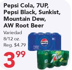 pepsi cola black, sunkist, mountain dew, root beer variedad reg. $eps
