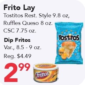 frito tostitos rest style ruffles queso fritos var., reg. $fritos tost