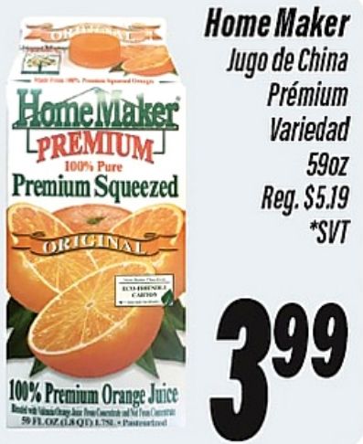 home maker lpremium pure premium squeezed original jugo china prémium variedad $*svt orange juice
