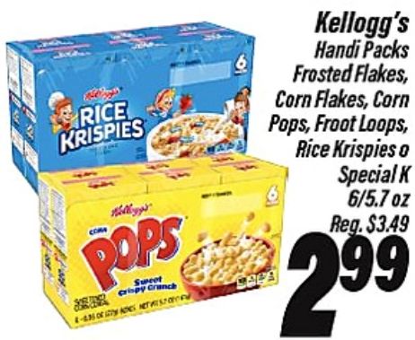 rice krispies pops sweet crispy cranch capa kellogg's handi packs frosted flakes corn flakes, pops, froot loops, special