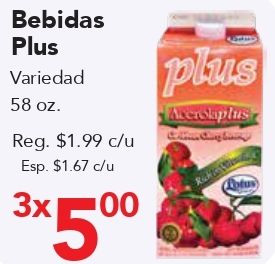 bebidas plus variedad reg. $c/u esp. xplus acerolaplus richt