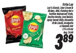 lays frito lay's classic sour cream onions, bbq, flaming tostitos restaurant style, doritos nacho, cool banch spicy sweet chily, dinamita chile limon, incognita oflammin reg.