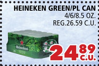 HEINEKEN GREEN/PL CAN 4/6/8.5 OZ.