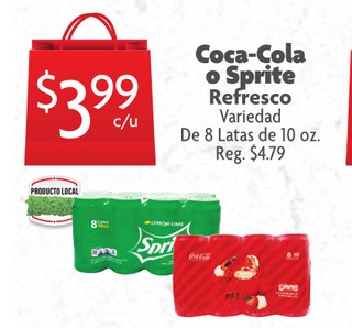 Coca-Cola o Sprite Refresco Variedad De 8 Latas de 10 oz.