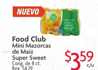 Food Club Mini Mazorcas de MaÃz Super Sweet Cong. de 8 ct.