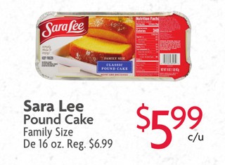 Sara Lee Pound Cake Family Size De 16 oz. Reg. $6.99