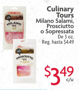 Culinary Tours Milano Salami, Prosciutto o Sopressata De 3 oz.