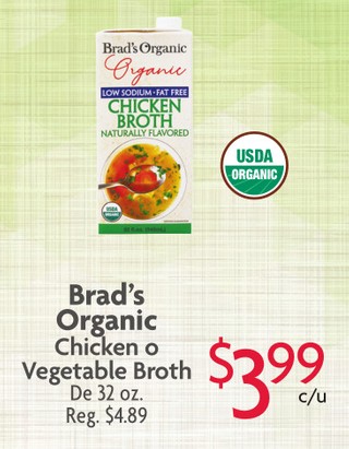 Brad's Organic Chicken o Vegetable Broth De 32 oz.