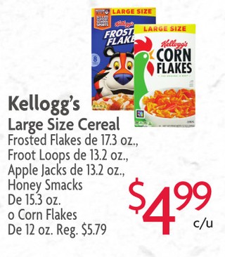 Kellogg's Large Size Cereal Frosted Flakes de 17.3 oz.,