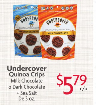 Undercover Quinoa Crips Milk Chocolate o Dark Chocolate + Sea Salt De 3 oz.