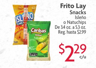 Frito lay snacks isleño o natuchips de 3.4 oz. a 5.3 oz.