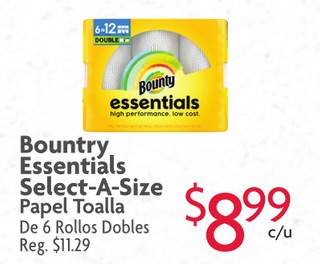 Bounty essentials select-a-size papel toalla de 6 rollos dobles