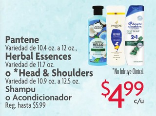 Pantene Variedad de 10.4 oz. a 12 oz., Herbal Essences Variedad de 11.7 oz. H o *Head & Shoulders Variedad de 10.9 oz. a 12.5 oz. Shampu o Acondicionador
