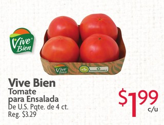 Vive bien tomate para ensalada de u.s. pqte. de 4 ct.