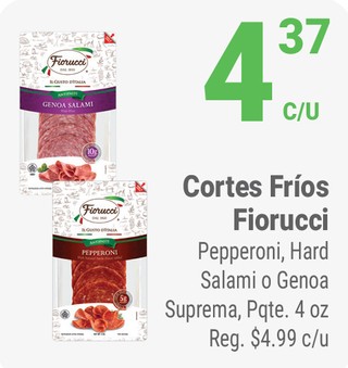Cortes FrÃos Fiorucci Pepperoni, Hard Salami o Genoa Suprema, Pqte. 4 oz