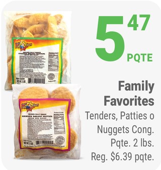 Family Favorites Tenders, Patties o Nuggets Cong. Pqte. 2 lbs.