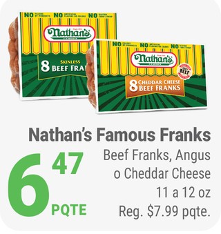 Nathan´s famous franks beef franks, angus o cheddar cheese 11 a 12 oz