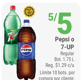 Pepsi o 7-UP Regular Bot. 1.75 L Reg. $1.29 c/u