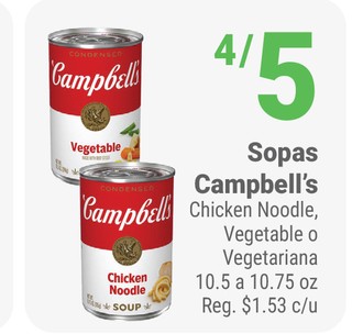 Sopas Campbell's Chicken Noodle, Vegetable o Vegetariana 10.5 a 10.75 oz