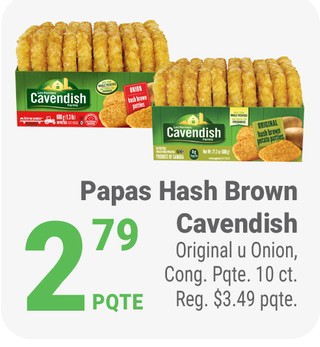 Papas Hash Brown Cavendish Original u Orion, Cong. Pqte. 10 ct.