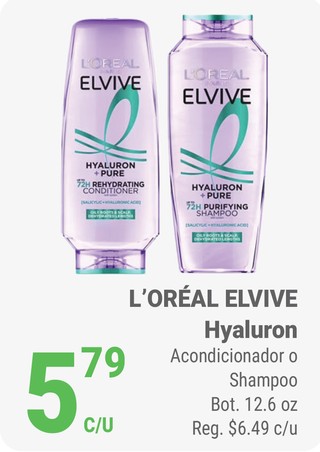 L´oreal elvive hyaluron acondicionador o shampoo bot. 12.6 oz