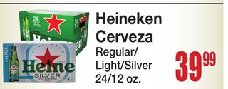 Heineken cerveza regular/light/ silver 24/12 oz.
