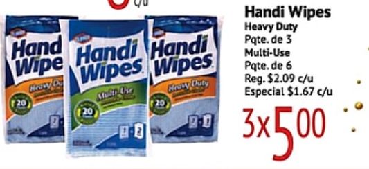 hand wipe handi wipes hessy missy duty heavy pate ulti-use pate.de reg. $c/u especial