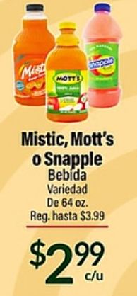 mist motts apple mistic mott's snapple bebida variedad reg.