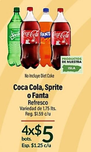 spri coca cola fant coca-cola incluye diet coke sprite fanta refresco variedad reg. $c/u x$bots. esp. productos isla