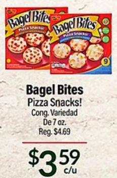 bagel bites pizza snacks! cong variedad reg. $$c/u