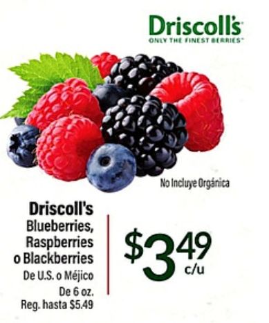 driscoll's only finest berries blueberries raspberries blackberries méjico reg. incluye orgánica