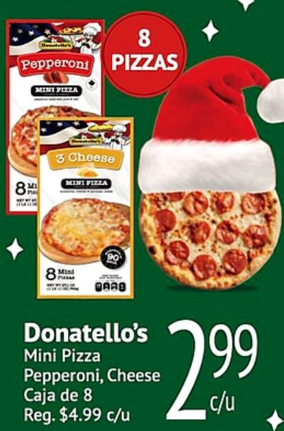 pepperoni pizzas mini pizza cheese baro donatello's caja $c/u
