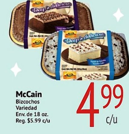 dupa difficious deep'in delicious mccain bizcochos variedad reg. $c/u