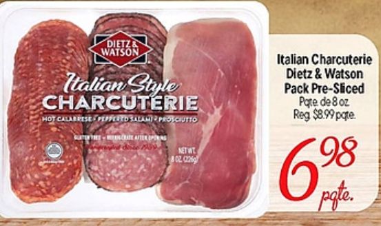 dietz& watson italian style charcuterie calabrese peppered salami prosciutto dietz pack pre-sliced pate $pote