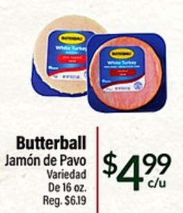 white turkay butterball jamón pavo variedad reg. $$c/u