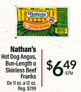 mathan's nows nathan's angus bun-length skinless beef franks reg.