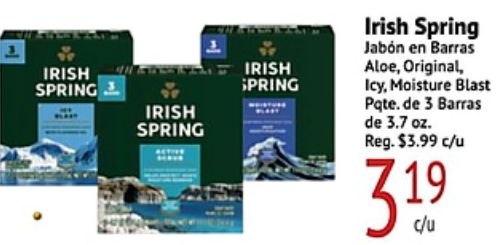 irish spring active jabón barras aloe original, icy, moisture blast pqte reg. $c/u