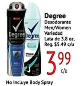 degree desodorante men/women variedad lata reg. $c/u incluye body spray